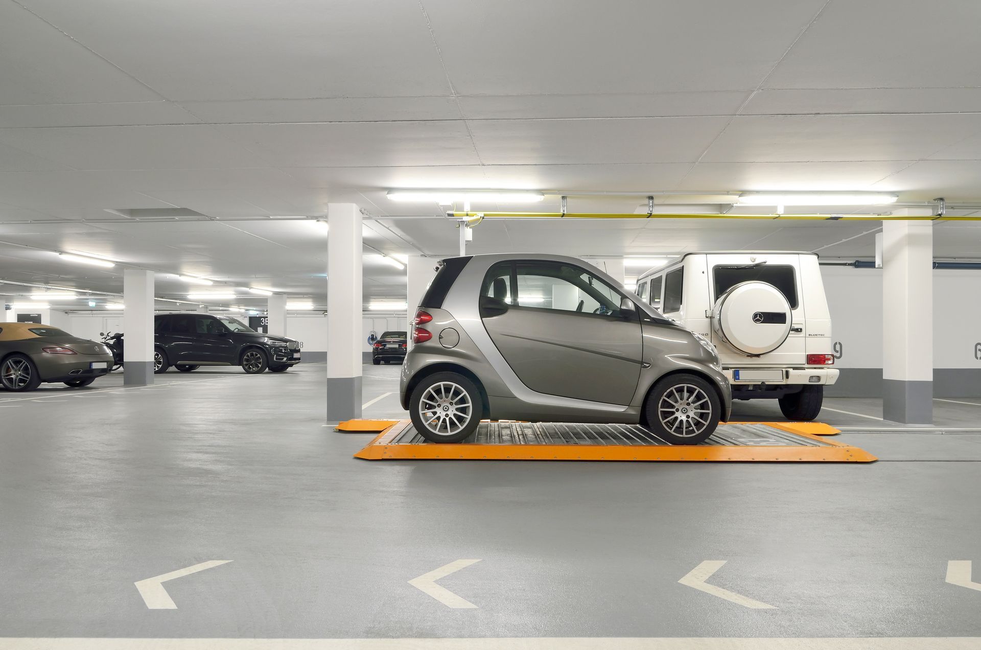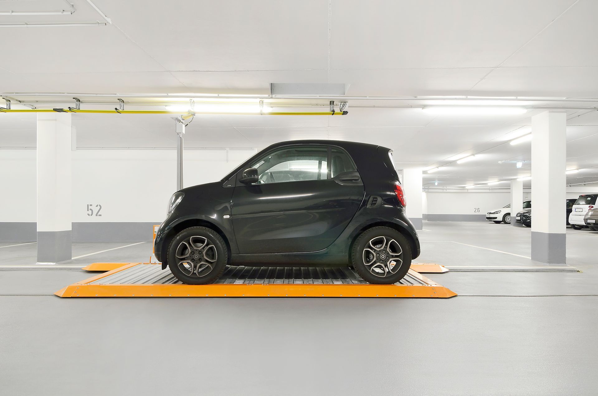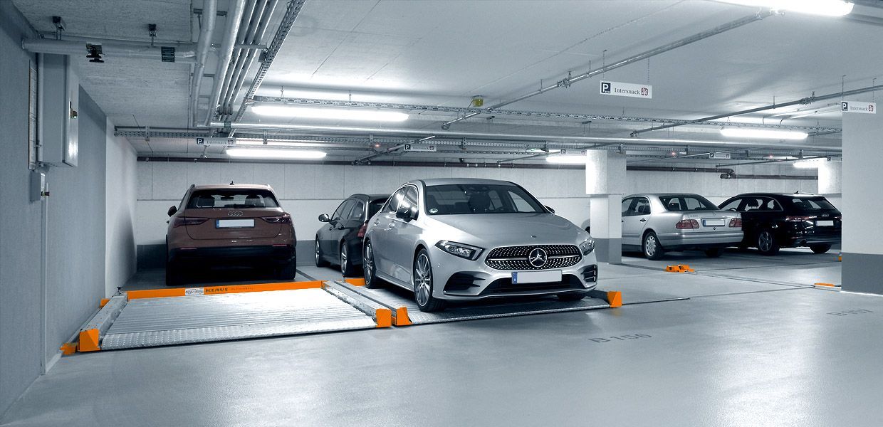 Parkeringsplatforme tilbyder en intelligent og pladsbesparende løsning til at maksimere parkeringskapaciteten i områder med begrænset plads. Systemerne gør det muligt at skabe op til 100% flere parkeringspladser ved at udnytte uudnyttede områder som hjørner, bag søjler eller brede kørebaner. Dette gør dem ideelle til eksisterende P-kældre og lignende faciliteter, hvor det ikke er muligt at etablere dybere gruber eller øge højden.